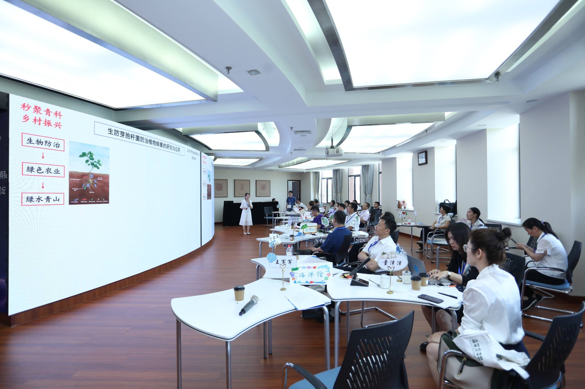 在论坛交流环节,人才振兴、产业振兴、科技创新3个组别的参会人员,采取“自由选座、分享1张PPT、抢麦发言5分钟”的方式,分享成长经历、交流学术观点,展开热烈讨论。
