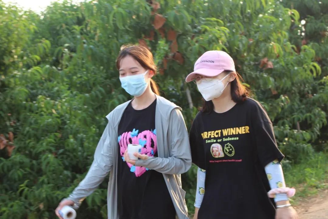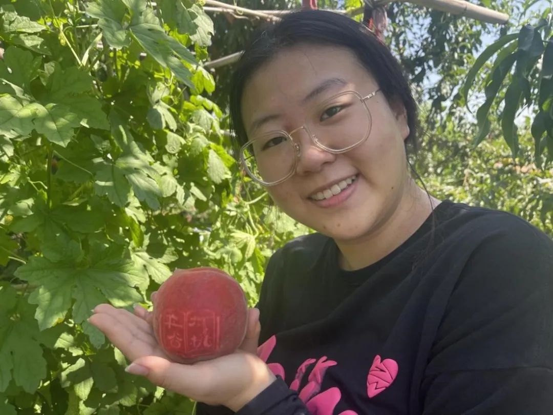 师生走进田间地头,从桃贴的设计、制作、裁剪,再到田间寻找合适的果型、贴制以及历经一周晒印图案成形的文创桃总结,切身体会文创桃制作的全过程,将文创桃的制作过程对果农进行指导。
