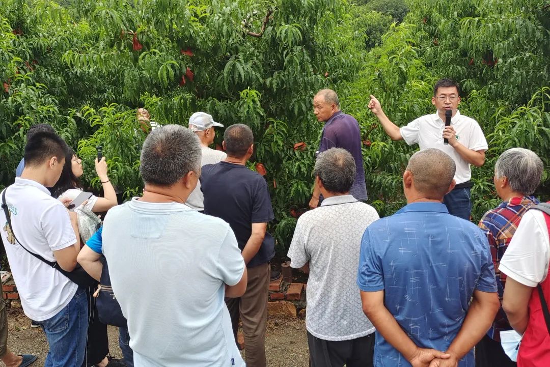生物与资源环境学院教师刘悦萍带领暑期实践团先后到大华山镇后北宫村、刘家店镇胡店村桃树种植基地。在桃园里,刘悦萍与果农深度交流桃树生长过程中病虫害的生物防治问题、大桃品质问题。同时,在桃园里为学生们上起了课。