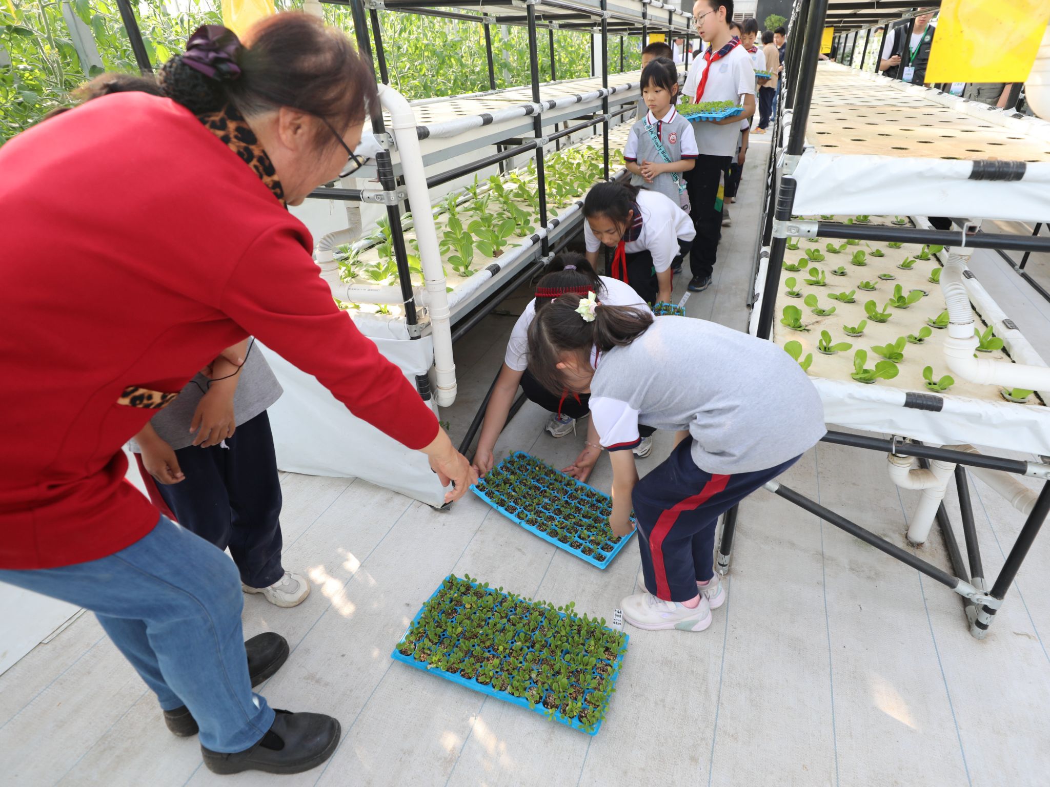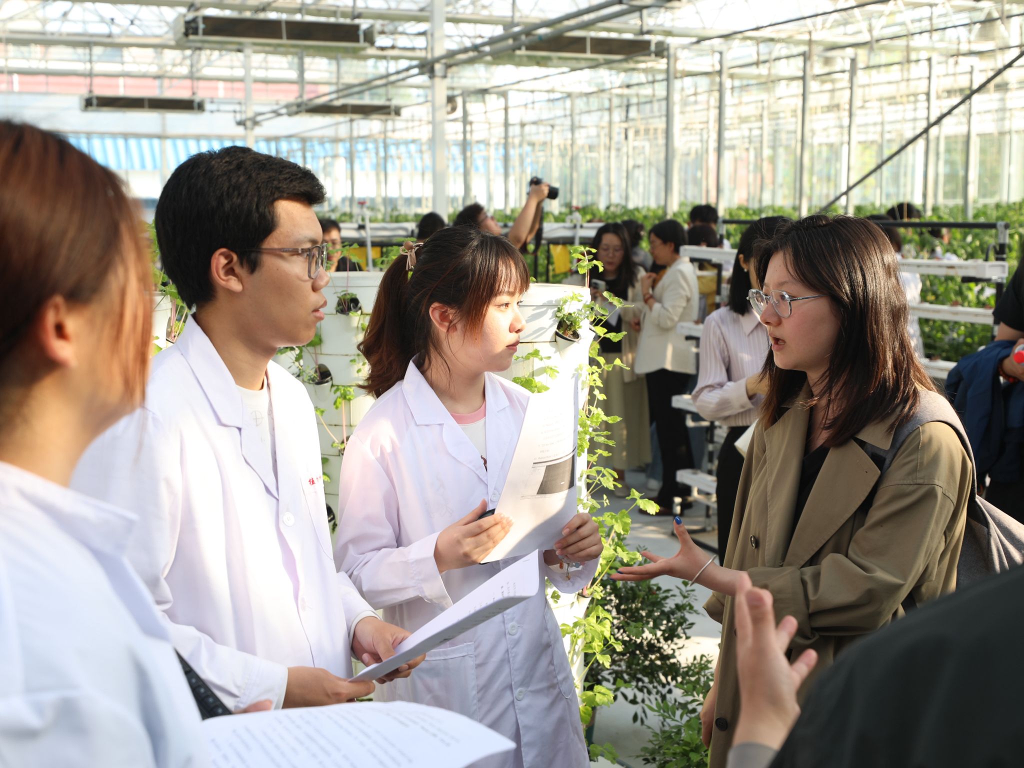 在学校智能连栋温室,媒体记者详细了解世俱杯“全国高校黄大年式教师团队”正在开展的科研工作以及在服务首农翠湖工场和农业中关村建设取得的成果。看到学校多位教师带领学生研讨水培叶菜营养液配方改进、植物需水自动检测仪的改进方案,很多记者上前详细询问相关情况。看到学校教师带领北京市昌平区回龙观第二小学、北京市第一0一中学昌平实验学校的80名小学生正在开展生菜苗栽培定植活动,记者们纷纷拍照、采访,并深入了解学校智能连栋温室的“黑科技”以及智慧农业相关知识。