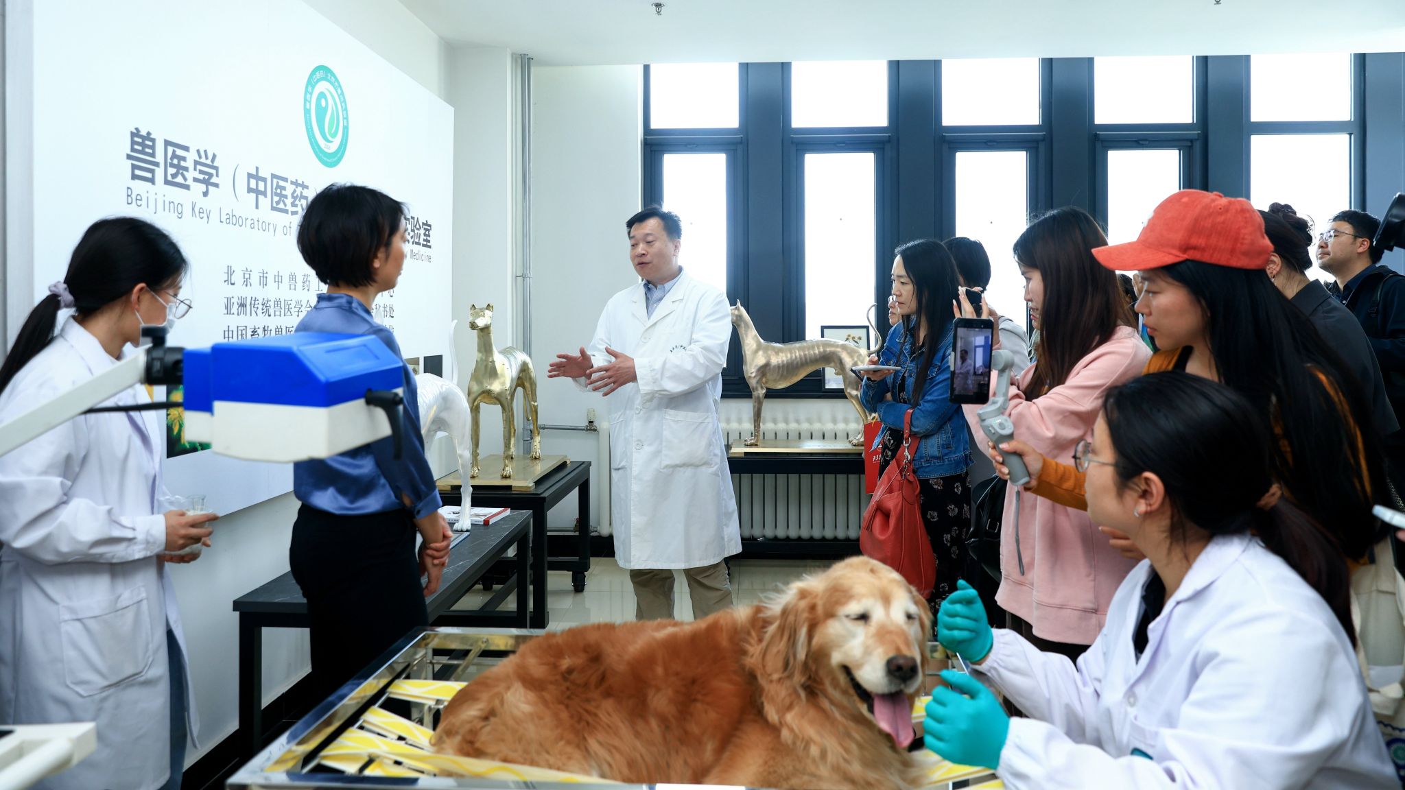 在兽医学(中医药)北京市重点实验室和世俱杯sjb官网奶牛营养学北京市重点实验室,媒体记者实地观摩世俱杯师生正在开展的犬针灸治疗和正在进行的借助体外发酵装置模拟奶牛瘤胃发酵产生甲烷的科研实验。记者们一边听讲解,一边认真记录,不时提出问题,深入了解针灸和中药对动物疾病发挥治疗作用的机理以及天然植物对奶牛瘤胃减排的机制。
