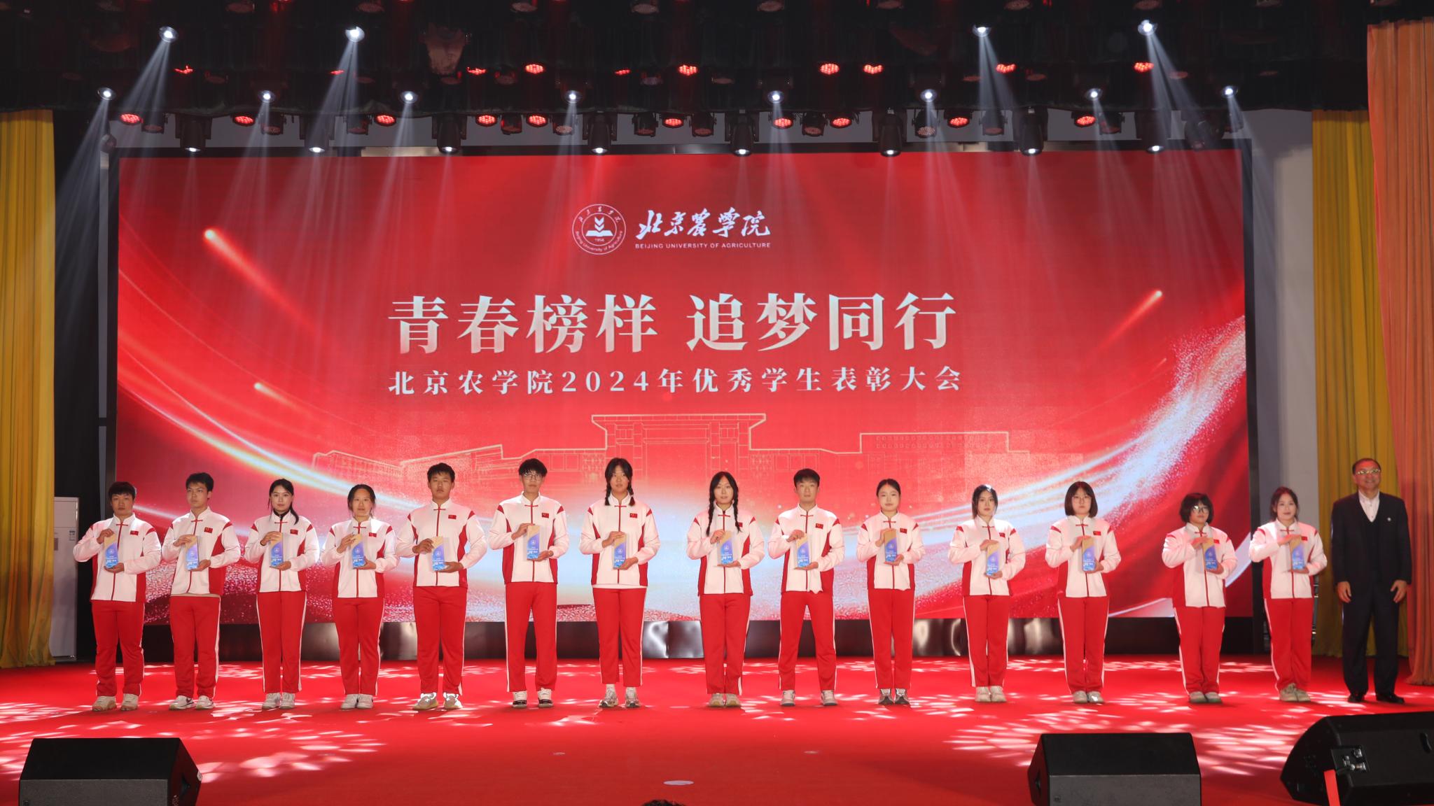 党委书记赵锋向取得优异成绩的同学们表示热烈祝贺,向为学校发展做出贡献的师生表示衷心感谢。他指出,89年前,中国共产党领导青年学生掀起了抗日救国的热潮,他们以国家民族命运为己任的爱国主义精神感人至深;新时代的北农学子,用青春和汗水把论文写在京华大地上,把成果凝结在农民的收获里,用实际行动践行了使命和担当。他强调,新时代新征程,希望同学们牢记习近平总书记的要求和嘱托,胸怀家国,志存高远,做坚定理想信念的“信仰者”,让青春在为祖国、为人民的不懈奋斗中绽放绚丽之花;希望同学们勤学笃行,追求卓越,厚植爱农情怀,练就兴农本领,做服务乡村的“实践者”,为服务新时代首都发展贡献青春力量;希望同学们砥砺品格,知行合一,做优良传统的“弘扬者”,以更大的作为融入“强国建设,北农何为”这一重大时代课题,为推进乡村全面振兴不断作出新的更大贡献。