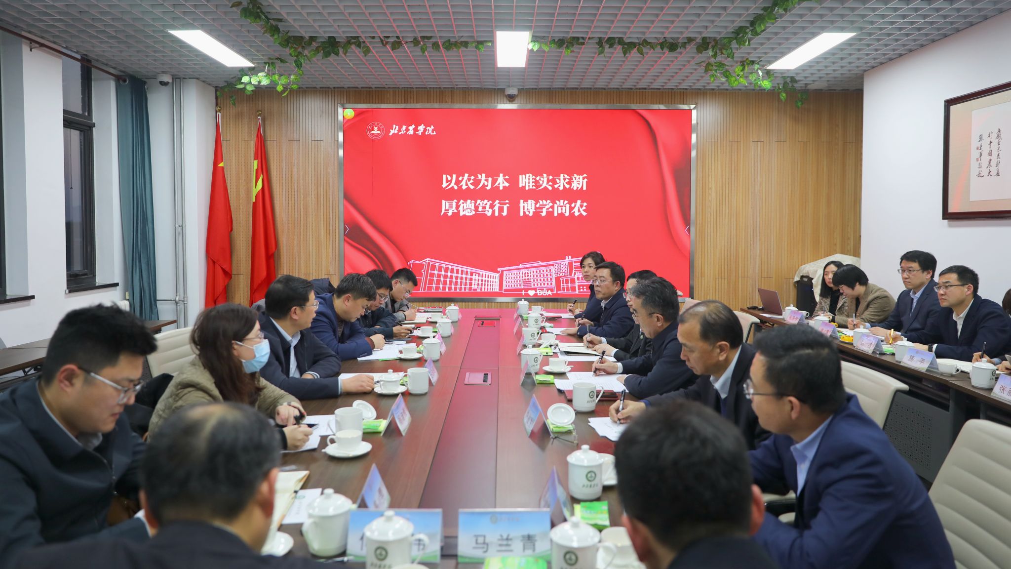 段留生详细汇报了学校基本情况、办学特色和发展成效,重点介绍了在党委坚强领导下,学校在知农爱农新型人才培养、都市农林特色学科专业建设、高水平人才和师资队伍建设、大力开展有组织科研以及“十大模式”助力乡村振兴方面开展的工作和取得的成效。他表示,学校将深入学习贯彻习近平总书记关于教育、关于“三农”工作的重要论述,认真落实第四次党代会确定的目标任务,大力推进质量立校、学科领航、创新驱动、人才强教、改革赋能“五大工程”,努力在高质量发展的进程中想在前、做在前、走在前,加快建设国内一流国际知名都市农林特色高水平应用型大学,为更好服务新时代首都发展和全面推进乡村振兴做出北农贡献。