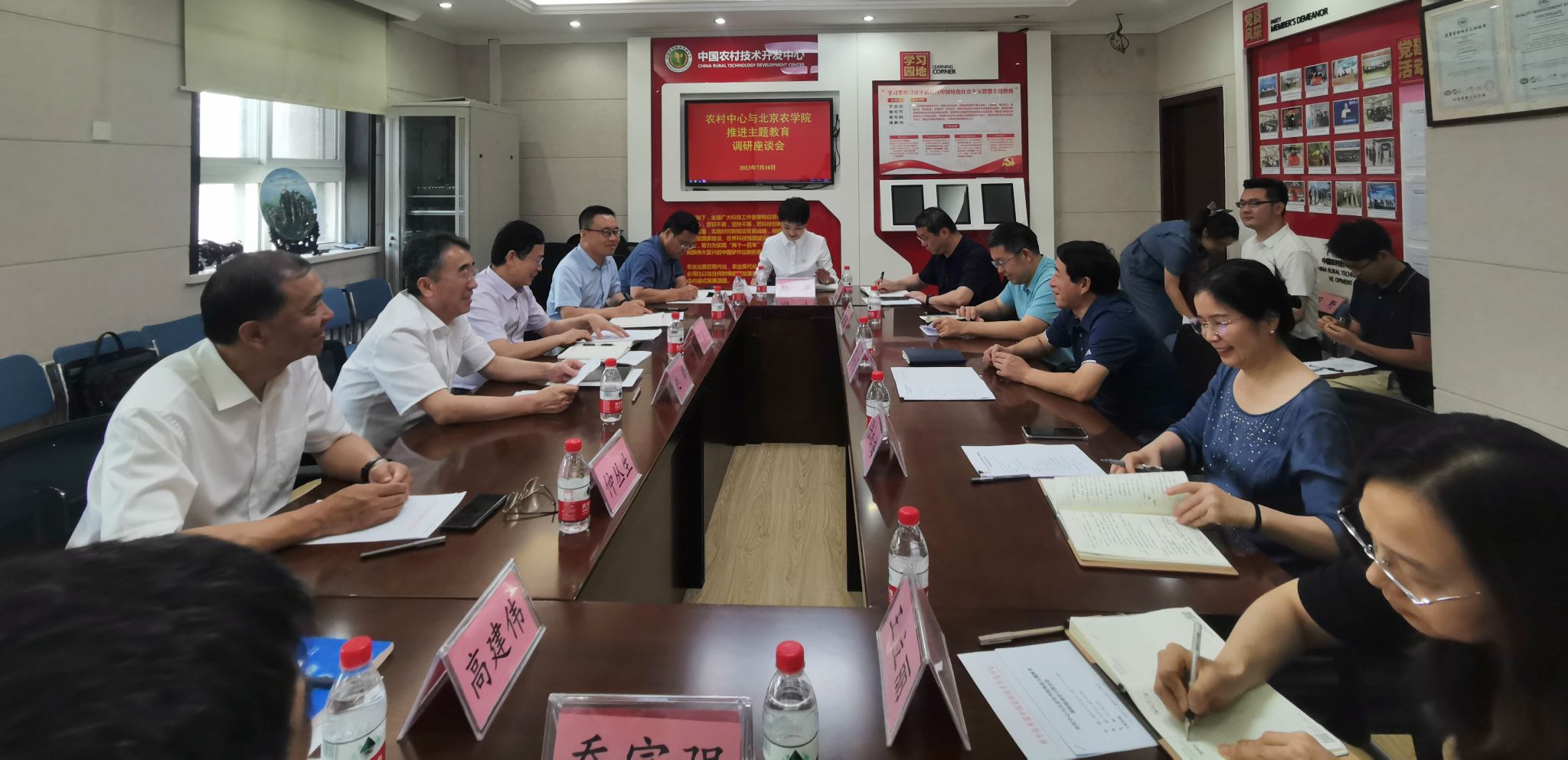 为深入学习贯彻党的二十大精神,推进主题教育走深走实,7月18日下午,学校党委书记赵锋,党委副书记、院长段留生,党委副书记仲丛生一行到中国农村技术开发中心开展主题教育调研,围绕深化农科教融合、服务全面推进乡村振兴战略开展座谈交流。中国农村技术开发中心党支部书记、主任邓小明,副主任张松梅、张辉等陪同调研。