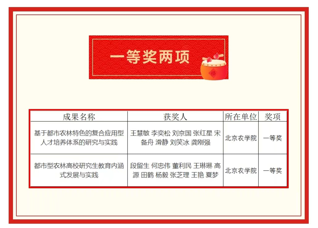 一是不断提高知农爱农新型人才培养质量。聚焦全面推进乡村振兴对人才的迫切需求,构建特色鲜明、优势明显的现代农林人才培养体系,深化本科教育综合改革,优化本科“3+1”人才培养模式,积极推进学科专业供给侧结构性改革,3个一级学科列入北京市博士点建设计划,2个学科获批与中国农业大学联合招收博士生。动态调整专业设置,成为全国首个为国家培养古树保护本科专业人才单位。积极培育、建设一流专业,园艺、农林经济管理、园林、动物医学4个专业入选国家级一流本科专业建设点,食品科学与工程、生物工程等13个专业入选北京市级一流本科专业建设点。强化产教融合、校企协同,13个项目入选教育部产学合作协同育人项目,获批“2022年国家留学基金委乡村振兴人才培养专项”。《基于都市农林特色的复合应用型人才培养体系的研究与实践》《都市农林高校研究生教育内涵式发展与实践》荣获北京市高等教育教学成果奖一等奖。毕业生就业率稳定在96%以上,本科生涉农专业行业内就业率在70%以上。