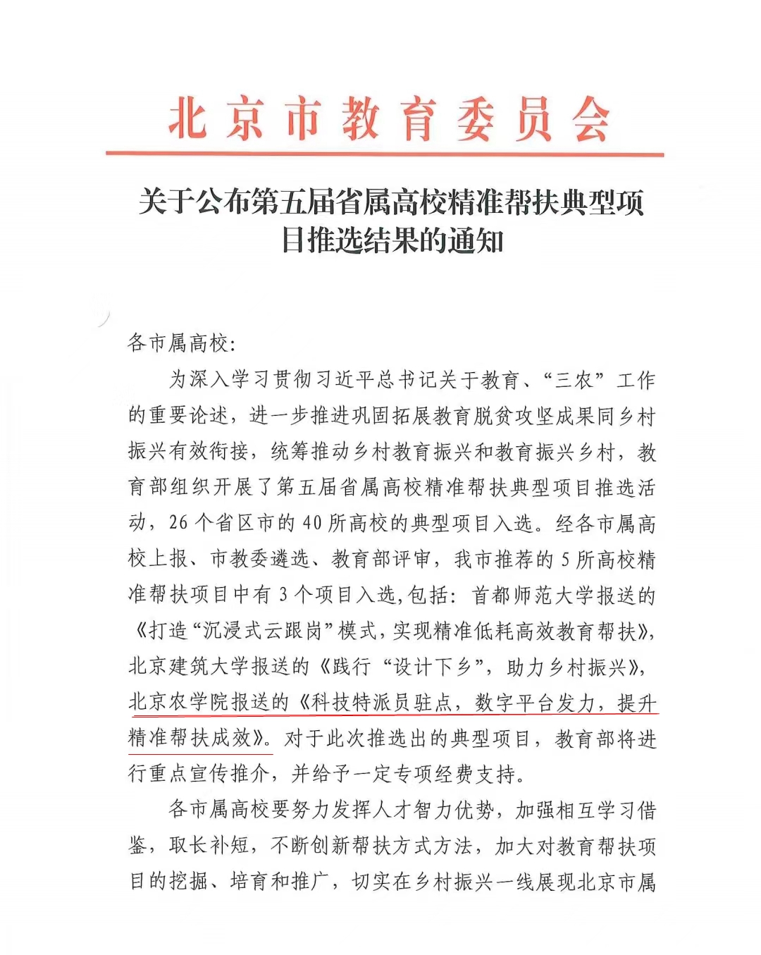 学校党委高度聚焦京津冀协同发展战略需求和首都乡村振兴重点工作,统筹布局、有组织推进学校科技与社会服务工作。学校在北京高校率先实施科研项目“揭榜挂帅”制度,先后发布30余个科技攻关需求榜单和22项社会服务类需求榜单,面向全校教师发出“求贤令”和“英雄帖”,为想干事、能干事、干成事的科技工作者提供施展才华的广阔舞台。“中榜英雄”们纷纷投入到平谷区“博士农场”创建、房山区周口店镇国家数字乡村建设、乡村产业振兴带头人“头雁”培育、休闲农业“十百千万”畅游行动等北京市乡村产业振兴重点工作,为推进首都农业农村现代化树立标杆与典范。