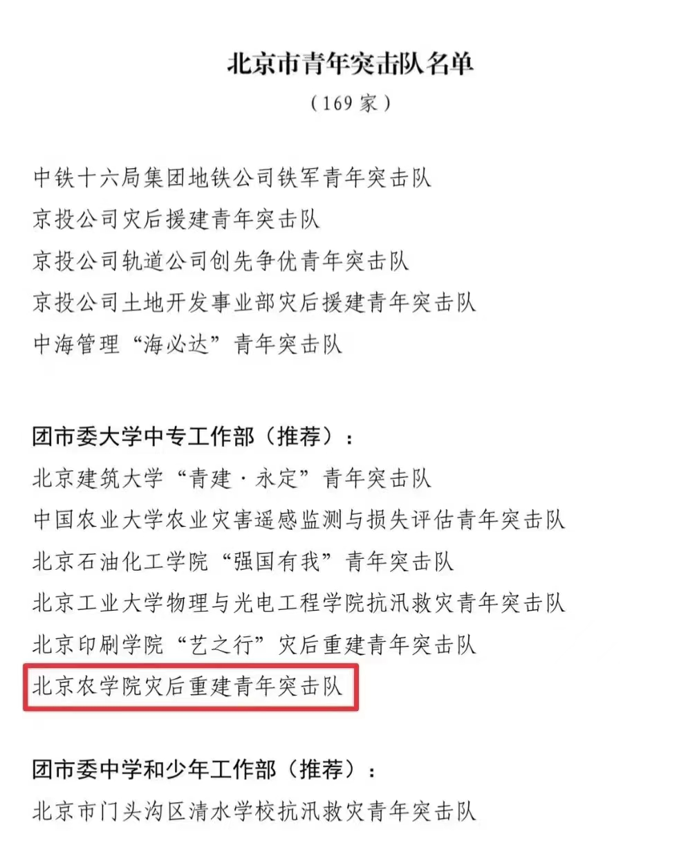 在首支青年突击队建队70周年之际,共青团北京市委员会决定命名一批在抗汛救灾和灾后恢复重建工作中做出突出贡献的先进集体为“北京市青年突击队”。近日,共青团北京市委员会公布“北京市青年突击队”名单,经逐级推荐、审核,“世俱杯sjb官网灾后重建青年突击队”入选。