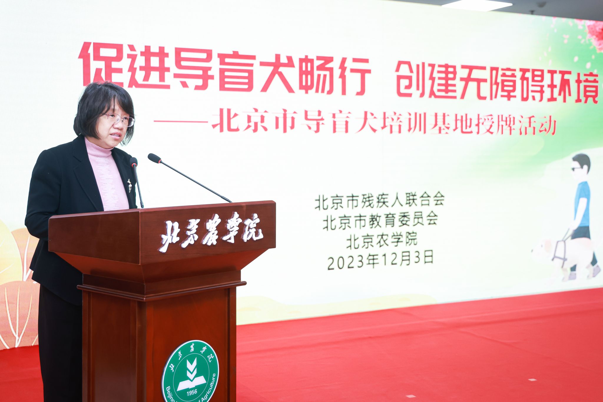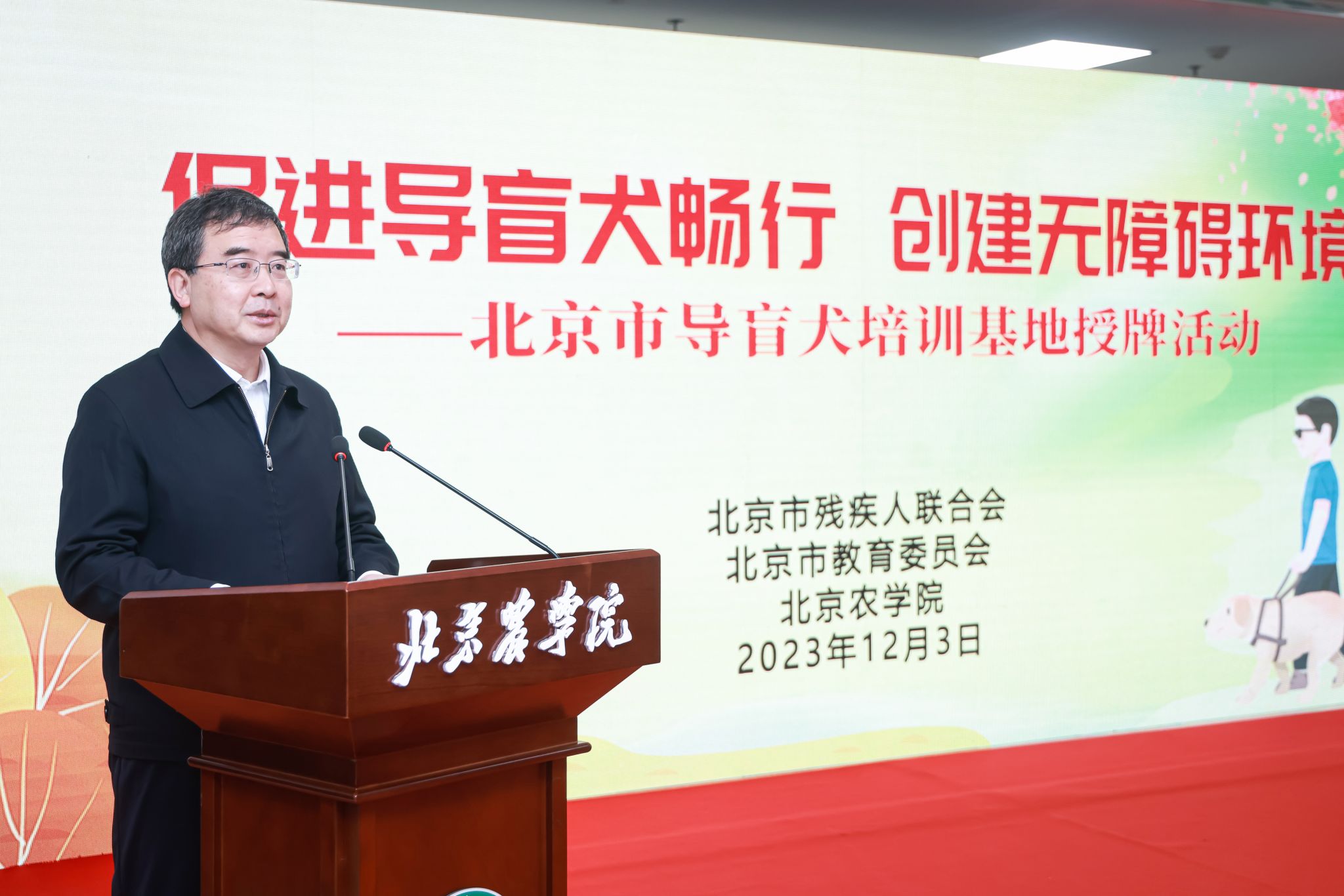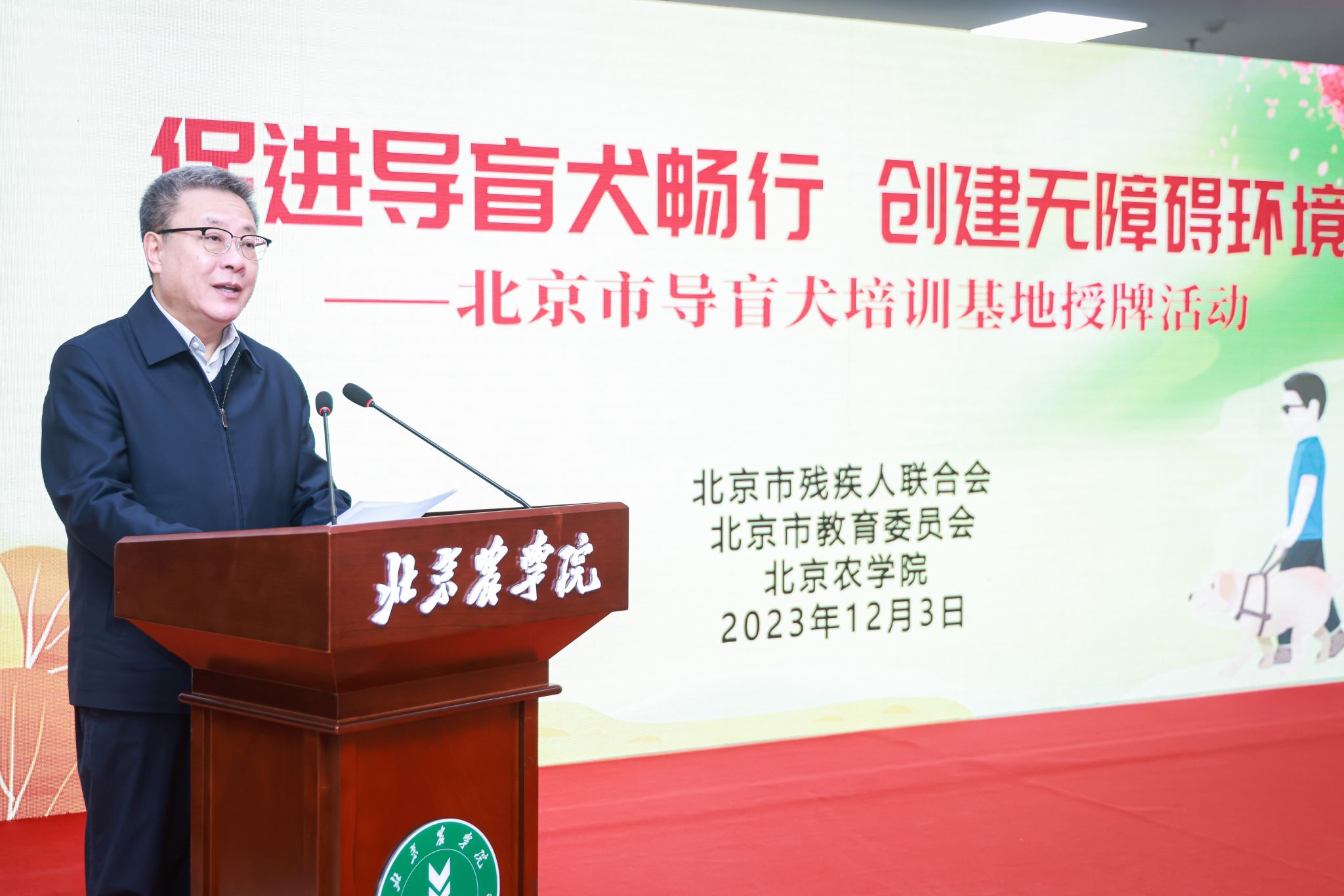 世俱杯sjb官网党委书记赵锋在致辞中指出,作为一所北京市属都市农林特色的高水平应用型大学,学校坚持以服务新时代首都发展、“四个中心”建设和全面推进乡村振兴为使命,依托学科专业优势,积极参与导盲犬事业发展这一重要民生工程,在品种选育、训导、保健等方面打下扎实基础、取得了初步成效。他强调,学校将深入贯彻习近平总书记关于残疾人事业发展的重要论述和指示批示精神,认真落实中国残联和市委、市政府决策部署,以此次北京市导盲犬培训基地挂牌落户为契机,在市教委、市残联的指导和支持下,全力建好、管好、办好、用好这一重要基地,用心、用情、用力服务首都残疾人事业高质量发展,以实际行动展现 “北农担当”,贡献“北农力量”。