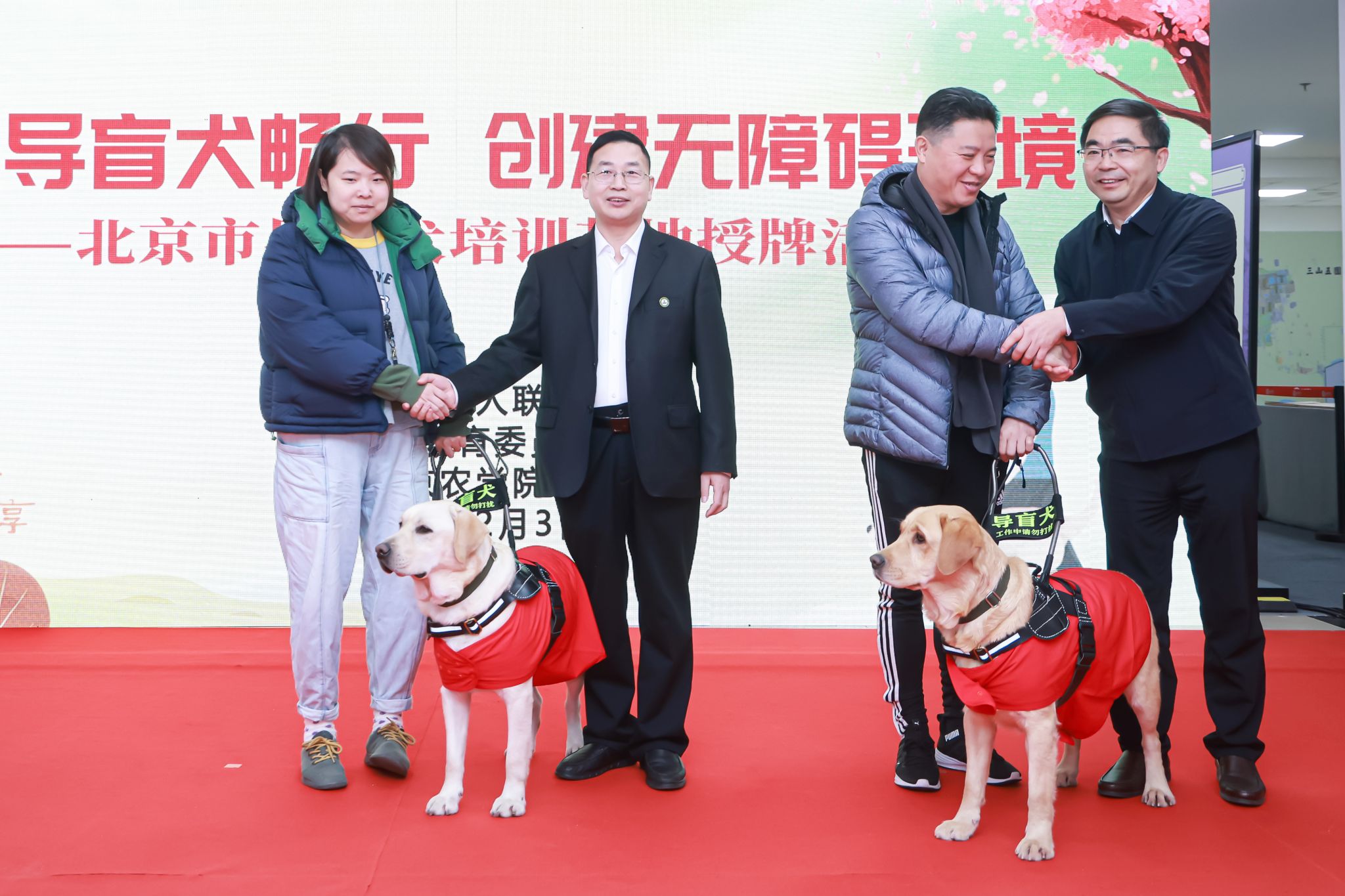 武维华、李东梅、侯君舒、刘宇辉共同为“北京市导盲犬培训基地”揭牌。