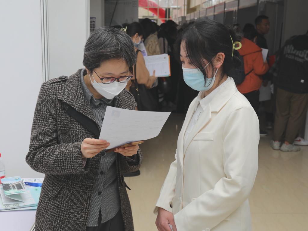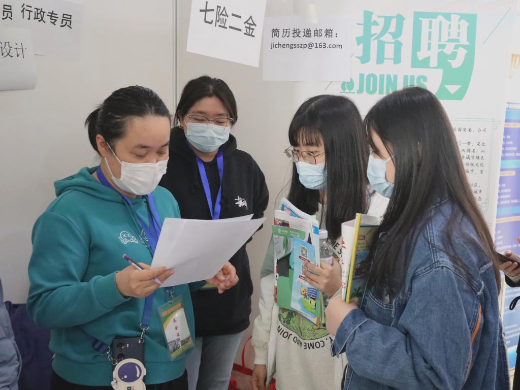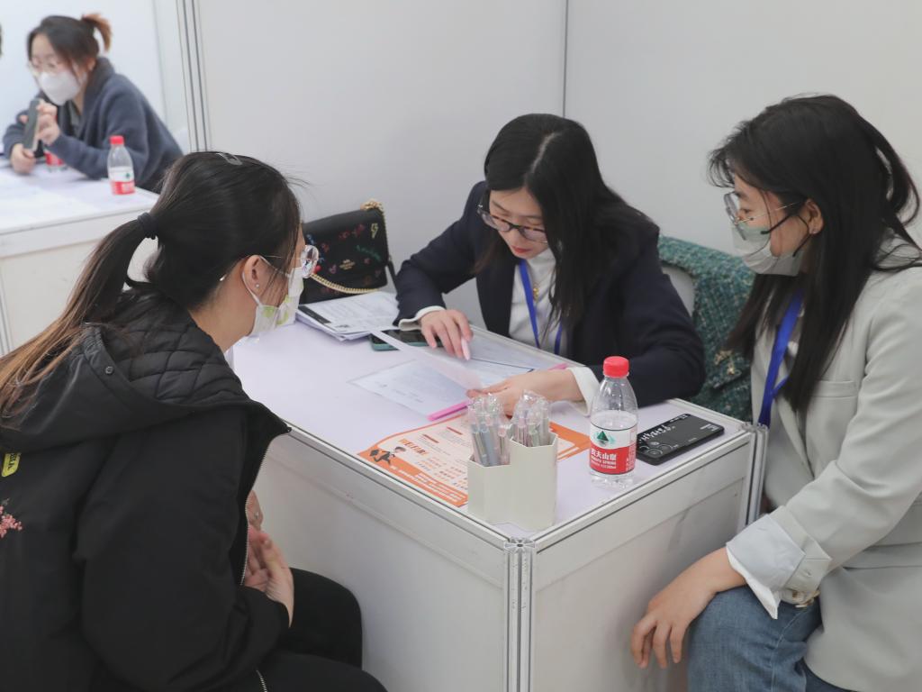 双选会现场,学校武装部还提供了征兵咨询,国际合作处就国际组织实习项目进行政策解读,生涯工作室教师为毕业生提供简历修改和求职礼仪咨询等服务。