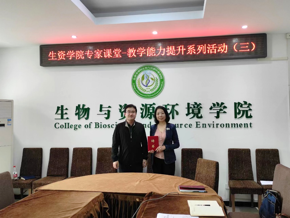 生物与资源环境学院为王娜老师颁发了“专家课堂——教师教学能力提升特聘教授”聘书。