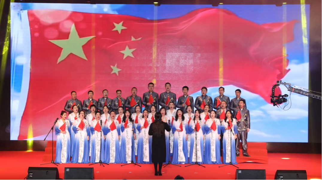 校机关教职工用合唱《不忘初心》《红旗飘飘》展现了党员干部、教职员工牢记初心使命、坚定理想信念、奋进新征程的精神风貌,表达了建设国内一流国际知名都市农林特色高水平应用型大学的坚定信心。