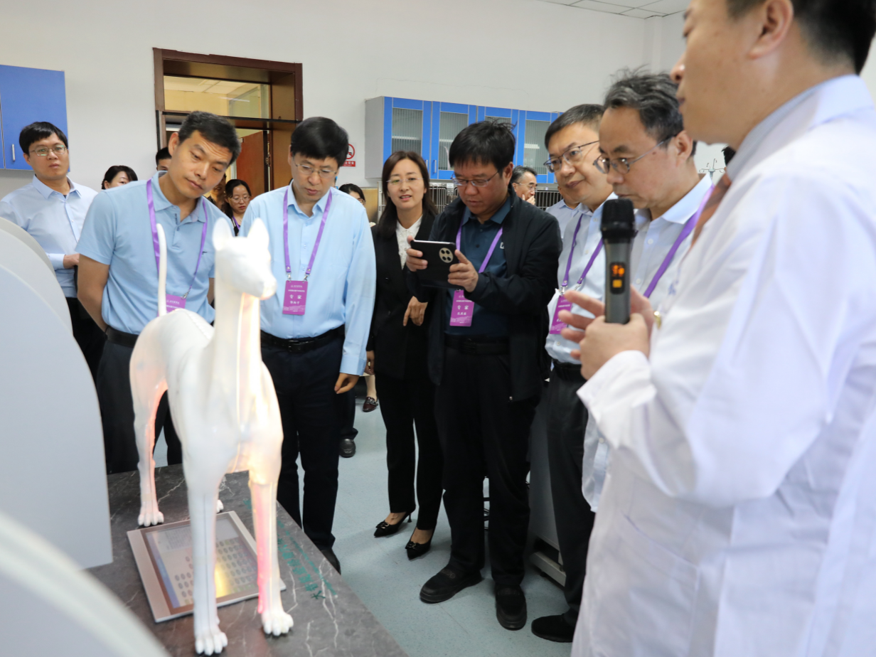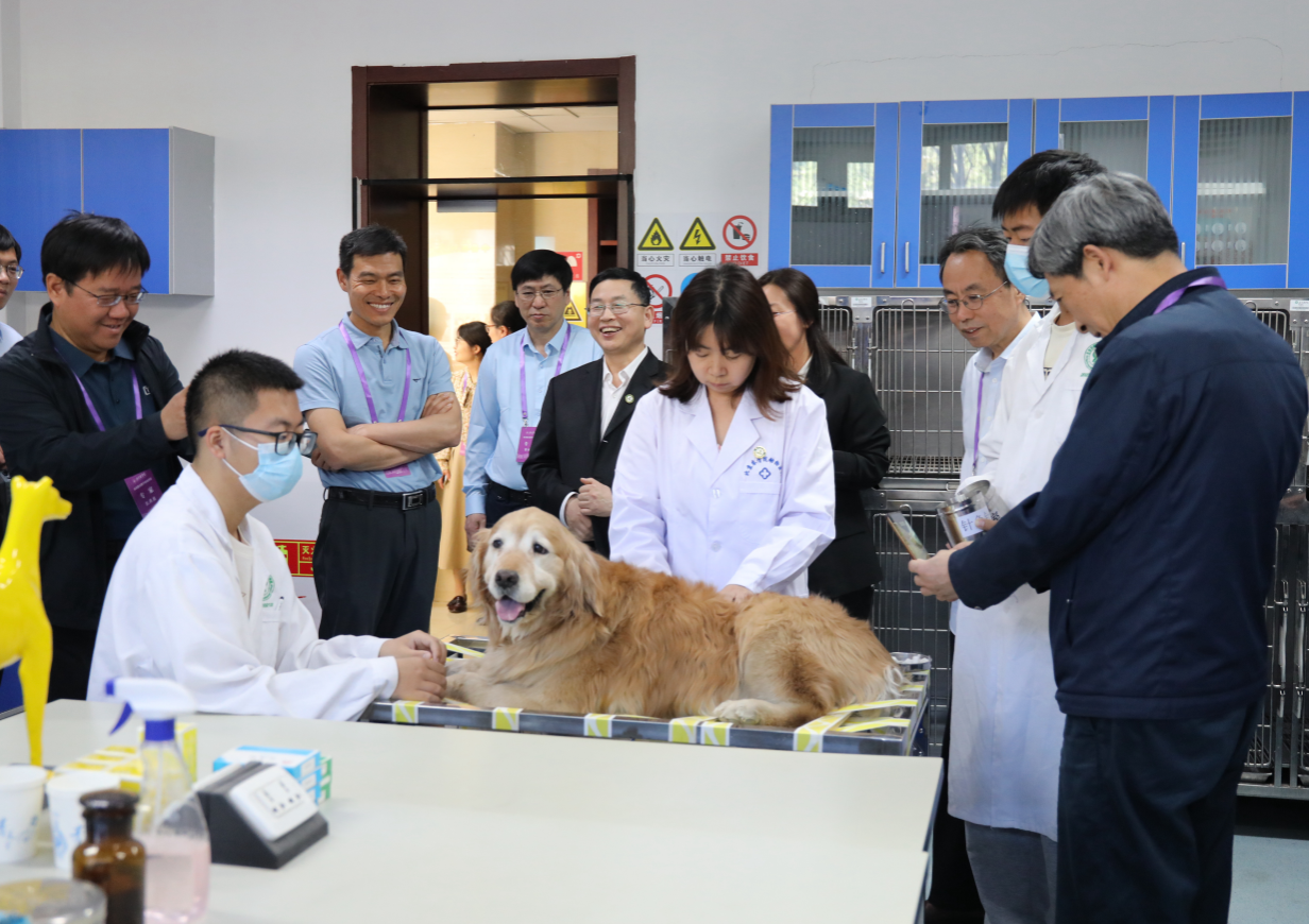在教学动物医院,专家组一行了解了学校充分发挥平台和资源优势,大力开展系统实践教学,培养理论知识扎实、实践能力强的宠物医师的做法和亮点,并详细了解学校中兽医特色专业建设成效。