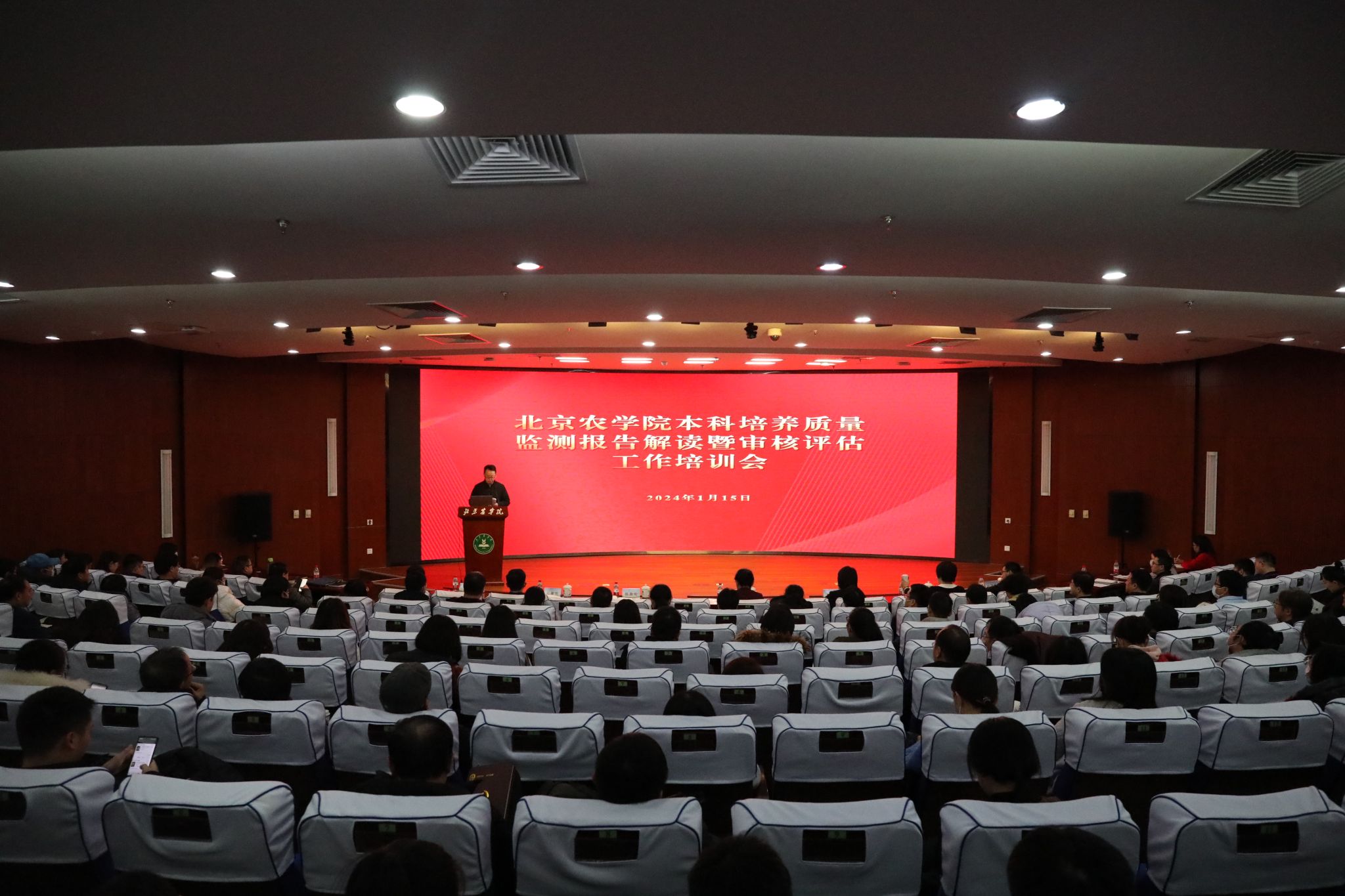 1月15日下午,学校在图书馆报告厅召开了世俱杯sjb官网本科培养质量监测报告解读暨审核评估工作培训会,会议由教务处处长马兰青主持,校党委常委、副院长武艳出席会议并讲话。