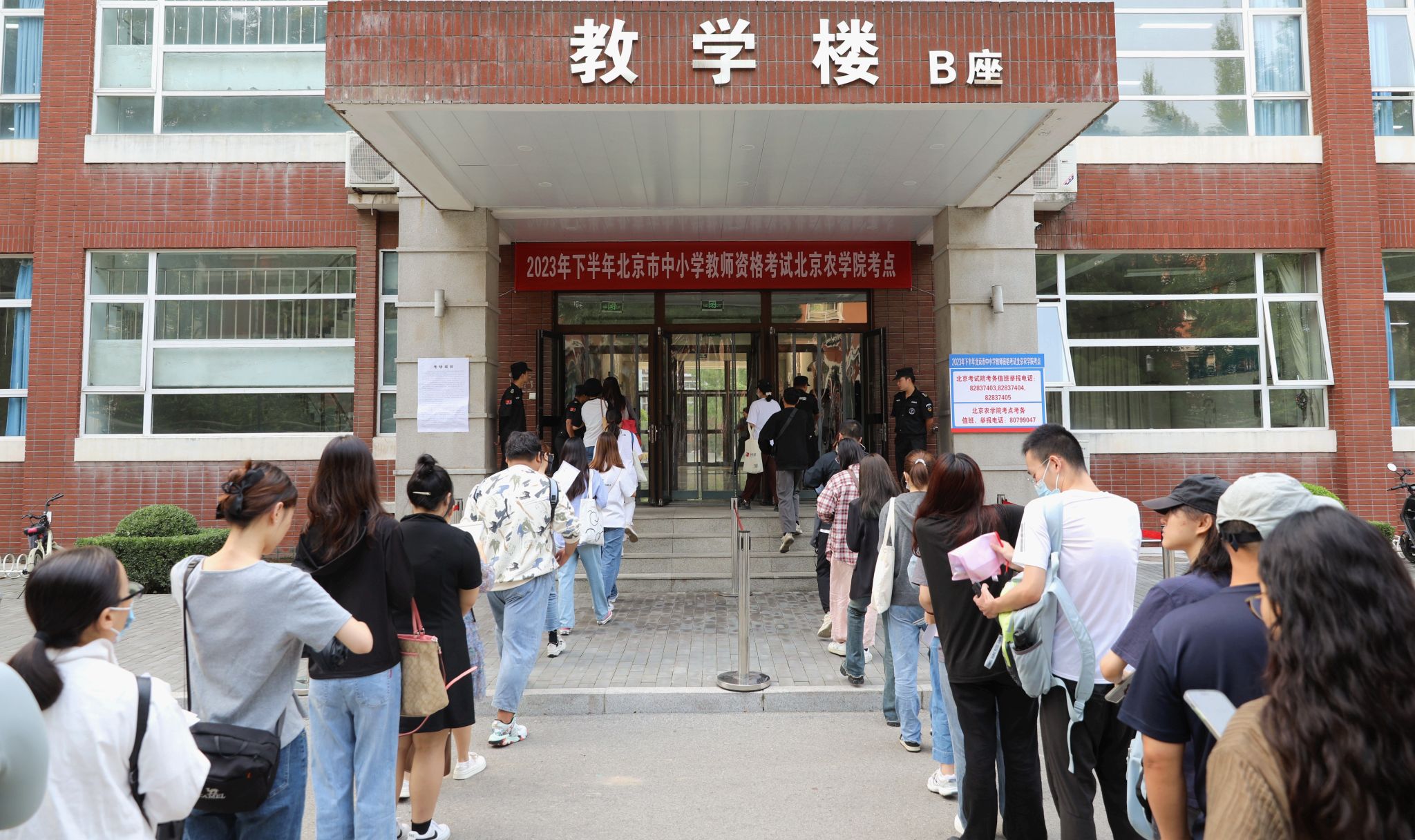 9月16日,2023年下半年北京市中小学教师资格考试开考,世俱杯sjb官网作为考点之一,圆满完成组考任务。本次考试,世俱杯共承担全天3个时间段69个考场、30个科目、1949人次的组考任务,共有150余名监考教师、考务及后勤保卫人员参与此次考试服务保障工作。