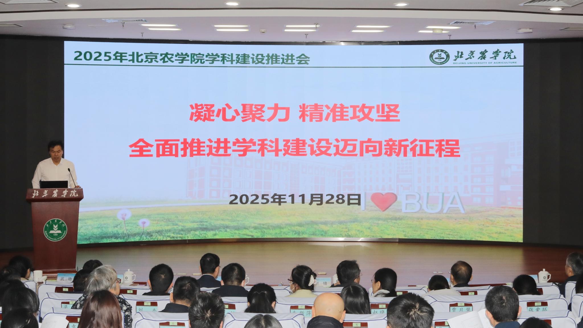 党委书记赵锋在讲话中对学校“十四五”以来学科建设取得阶段性成效给予充分肯定,对当前和今后一段时期学科高质量发展提出明确要求。他强调,要深入学习贯彻习近平总书记关于教育和关于“三农”工作的重要论述,聚焦党的二十届四中全会和市委十三届七次全会关于一体推进教育科技人才发展的部署和要求,进一步强化学科建设在学校发展中的龙头作用,深刻认识学科建设对于落实立德树人根本任务、持续推动学校事业高质量发展的极端重要性,以“功成不必在我,功成必定有我”的担当,全力推动学科建设再上新台阶。要压实落细学科建设的主体责任,构建协同发展的学科生态体系,打造支撑学科发展的高素质专业化师资队伍,努力提升学科核心竞争力。要进一步突出党建引领,充分发挥思想政治工作优势,以更高站位、更实举措、更大力度,全面深化实施“学科领航工程”,努力形成上下同心、齐抓共管的生动局面,以“实干创先”的精气神书写学科建设的新篇章,为服务首都“四个中心”功能建设、教育强国首善之区建设和推动乡村全面振兴作出更大贡献。