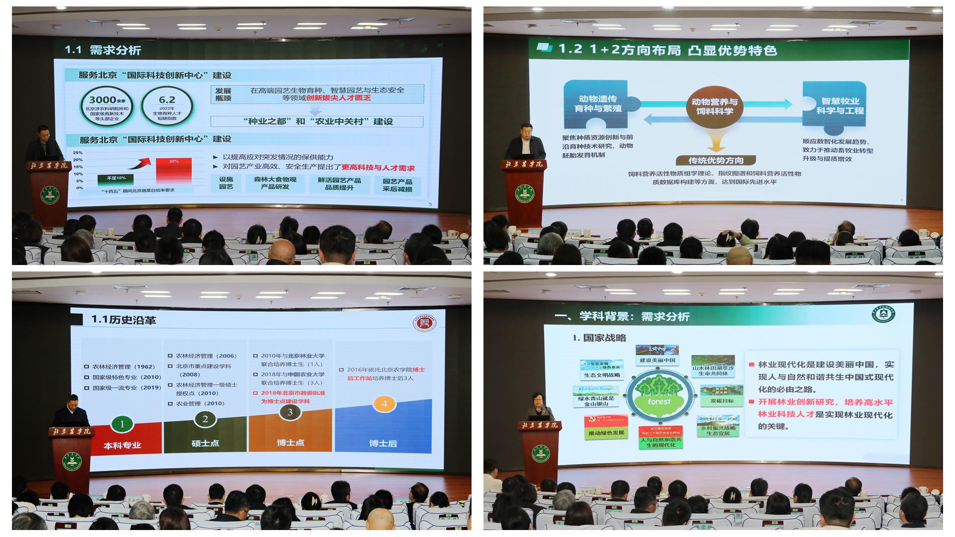 园艺学、畜牧学、农林经济管理、林学四个重点建设学科负责人分别对标对表、自我诊断,从学科建设的基本情况、学位点建设对比分析、下一步思路与举措等方面作交流汇报。