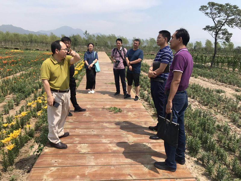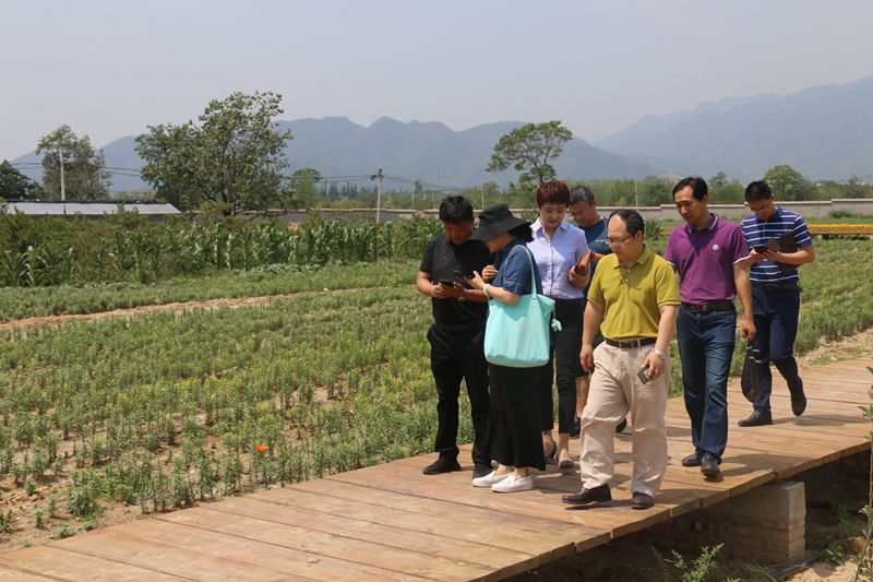 座谈会后,大家来到北庄村博农源态种植专业合作社进行实地调研,北庄村第一书记潘祖俊详细介绍了该地乡村旅游发展规划与产业发展情况。