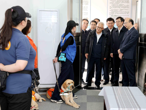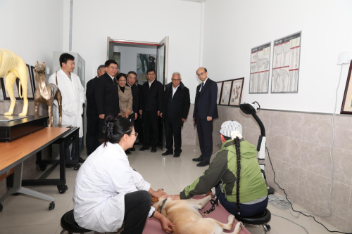 座谈会前,马骏实地调研了导盲犬培训示范中心,察看了犬舍、中兽医诊疗室、诊断处置室以及训练场等,观看了导盲犬工作展示,深入了解导盲犬日常养护、训练,基地建设、运行情况,并对学校发挥学科专业优势推动北京市导盲犬培训基地建设取得的进展给予充分肯定。市残联党组书记、理事长陆晓光,昌平区委副书记、区长支现伟,副区长马春秀等领导一同调研。