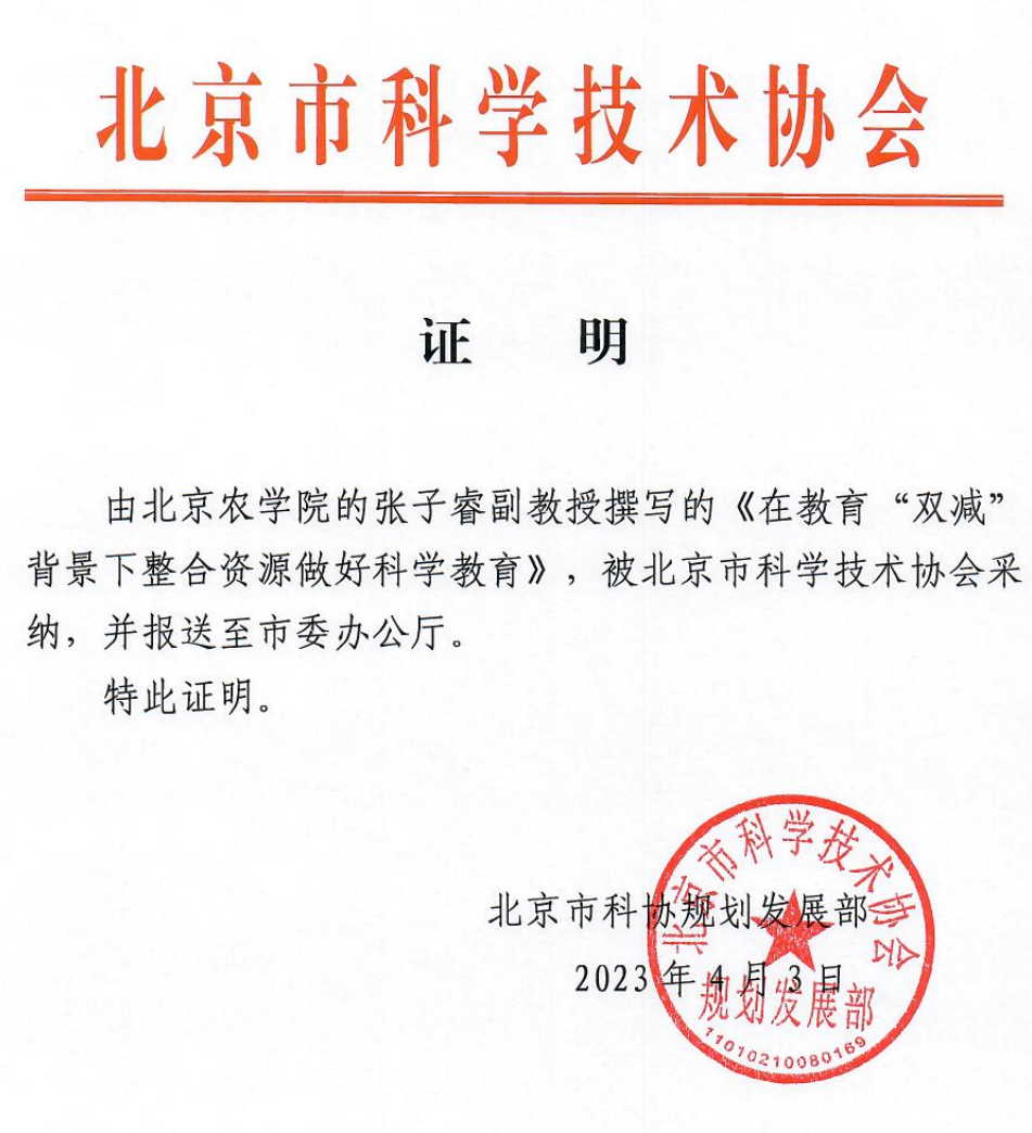 该建议中总结了目前北京地区教育工作中存在的一些问题,并提出在教育“双减”背景下整合资源做好科学教育的四点建议:一是以“大思政课”理念引领科学教育政治方向;二是深入学习习近平系列重要讲话精神,加快科学教育顶层设计;三是加强教师培训、引入校外教育资源,形成“一体两翼”的北京科学教育模式;四是全面调动相关机构和群众的积极性。