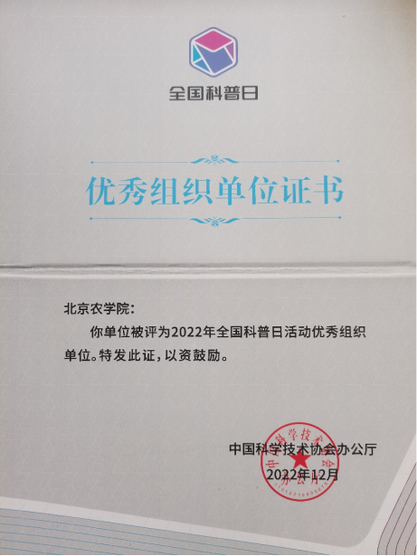近日,中国科协办公厅印发《关于对2022年全国科普日有关组织单位和活动予以表扬的通知》。世俱杯sjb官网荣获“2022年全国科普日活动优秀组织单位”。