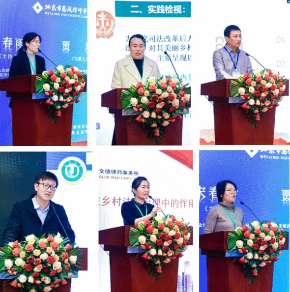 在“乡村治理现代化与法治问题”专题研讨会上,《中国法学》总编辑、中国人民大学法学院黄文艺教授,南京师范大学法学院副院长丰霏教授、北京市昌平区延寿镇罗立华书记、北京市惠诚律师事务所高级合伙人卞颖华律师,分别就乡村治理现代化与法治问题进行了深刻而独到的主题演讲,为与会者带来了丰富的学术盛宴和实践经验。中国政法大学民商经济法学院的李蕊教授与北京市委党校的杨守涛教授对本环节演讲嘉宾的演讲进行了总结与点评,进一步深化了对乡村法治建设的理解与思考。