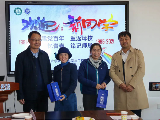 张红星首先代表全院师生,欢迎校友返校参加纪念活动,并介绍了学院发展历程和近况。副院长丁轲、马挺军代表学院,向校友代表谢玲、訾亚静赠送了学院教师的科研产品益生菌。