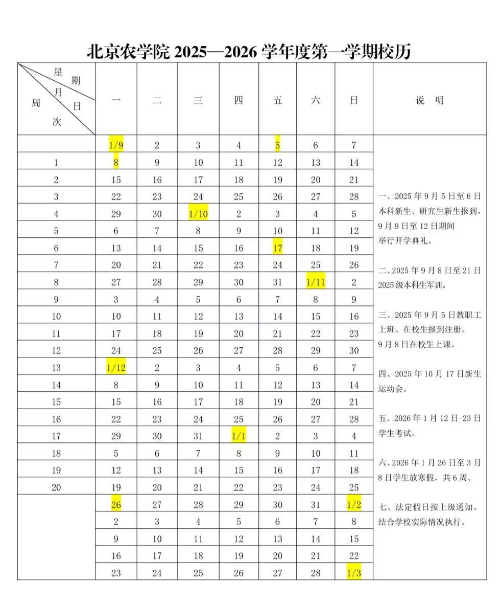 2025-2026学年度第一学期校历