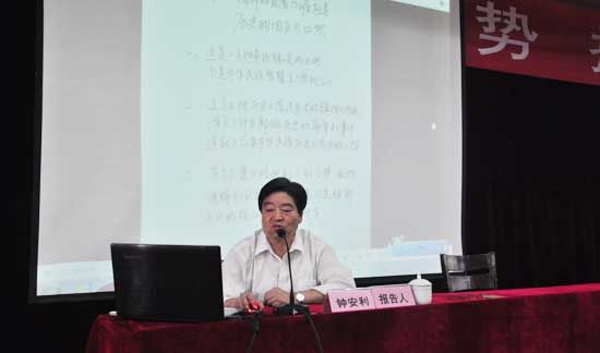 9月29日,248cc永利集团邀请原胶南市人大常委会副主任、胶南市文联名誉主席钟安利在学院一号教学楼西报告厅为教师及学生代表举行“青岛西海岸形势”报告会。学院党委书记冯宜明、党建联络员陈稷玲、副院长刘泽坤、副院长王东省、学院办公室主任孙思经到会听讲。报告会由学院党委副书记宋庆泽主持。