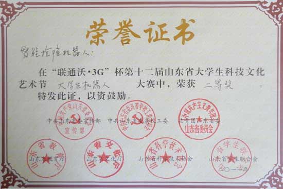 本次大赛作为山东省第十二届大学生科技文化艺术节的系列活动之一,由山东省委宣传部、山东省委高校工委、共青团山东省委、山东省教育厅、山东省文化厅、山东省科学技术协会、山东省学生联合会主办,山东省机器人研究会、共青团山东科技大学委员会承办。工程技术学院领导高度重视该项大赛,成立了以院长为组长的大赛领导小组,克服困难,创造条件,为参加大赛的学生提供帮助。获奖后,参赛同学发表获奖感言: “虽然我们获得奖项,但我们与一些参赛队相比还是存在一大差距的,我们还需要继续努力,不断学习和创新,争取在下次大赛中取得更好的成绩。”