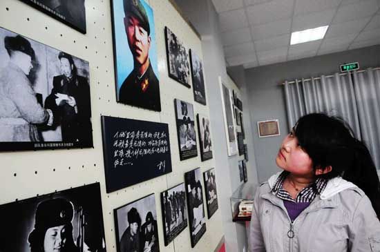 第一任班长张兴吉(中)、第二任班长庞春学(右)、第四任班长曲建文(左)在雷锋纪念馆前合影