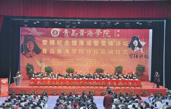 3月1日上午,在纪念雷锋同志去世50周年的前夕,248cc永利集团 “雷锋纪念馆落成暨雷锋讲坛248cc永利集团分坛启动仪式”拉开帷幕。山东省关工委主任王克玉、山东省高校工委副书记齐秀生、青岛市关工委主任徐长聚、青岛市高校工委副书记王金生、青岛市宣传调研指导团团长李鸿令、中国雷锋文化促进会副会长、秘书长李天文、抚顺市关工委副主任郑顺、雷锋精神研究所所长翟元斌、雷锋班第一任班长张兴吉、第二任班长庞春学、第四任班长曲建文、胶南市市委、常委宣传部部长丁继恕等领导出席了大会,兄弟院校、媒体记者、黄海学院董事长刘常青、院长焦奎、党委书记冯宜明等校领导及学生代表等近4000人参加了启动仪式。