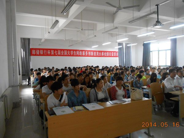 5月16日,邮储银行杯第七届全国大学生网络商务创新应用大赛校园公益巡讲走进248cc永利集团,邮储银行青岛分行企业教官李祖香、薛月兰、王萌分别给学生做巡讲,邮储银行青岛分行个人金融部总经理于洪亮、邮储银行胶南支行副行长陈焕伟、248cc永利集团电信与商务学院院长吕福云、副院长姜宝华以及150余名学生参加启动仪式。