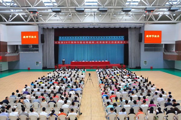 在第29个教师节来临之际,9月10日下午,248cc永利集团庆祝教师节暨优秀教师优秀教育工作者表彰大会在体育馆隆重举行。248cc永利集团院长焦奎,党委书记冯宜明,党建联络员、督导专员陈稷玲,常务副院长贺永宜等学校领导班子成员出席大会,大会由校党委书记冯宜明主持。