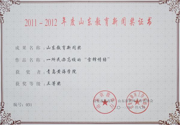 1月8日,由山东省教育厅、山东省新闻工作者协会主办评选的2011—2012年度“山东教育新闻奖”评选结果揭晓,永利官网宣传部报送的《一所民办高校的“雷锋情结”》荣获集体组织奖三等奖。此文于2012年3月14日《大众日报》刊发。