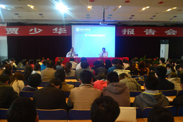 贾少华副院长以《电子商务创业的春天》为主题,讲述了浙江义乌工商学院创业教育的具体做法、学校教育教学改革的举措、大学课堂的转变、互联网时代营销方式的发展等。介绍了该校大学生如何利用电子商务平台开淘宝店的创业故事,用实例阐述了创业的内涵。在谈到对创业的认识时,他提出了六个观点:创业从自我雇佣开始;创业从模仿开始;创业不需要专业;人人皆能创业;创业实践是创业能力获得的途径;创业机会无处不在。