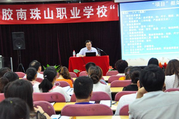 7月7日上午,山东省职业教育教研室主任杜德昌到永利官网举行关于国家改革发展示范学校项目建设的报告会,青岛胶南珠山职业学校领导和各项目建设组负责人、教师聆听了报告会。报告会由珠山职业学校副校长梁忠环主持。