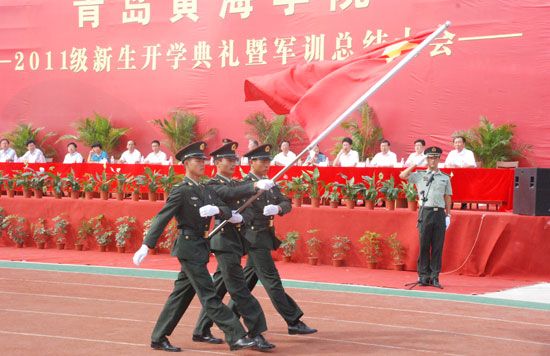 最后,青岛市教育局副局长、党委副书记、青岛市委高校工委副书记王金生作了重要讲话。他引用胡锦涛总书记在庆祝清华大学建校100周年大会上的讲话勉励同学:希望同学们把文化知识学习和思想品德修养紧密结合起来,把创新思维和社会实践紧密结合起来,把全面发展和个性发展紧密结合起来,实现思想成长、学业进步、身心健康有机结合,在德智体美相互促进、有机融合中实现全面发展,努力成为可堪大用、能负重任的栋梁之才。